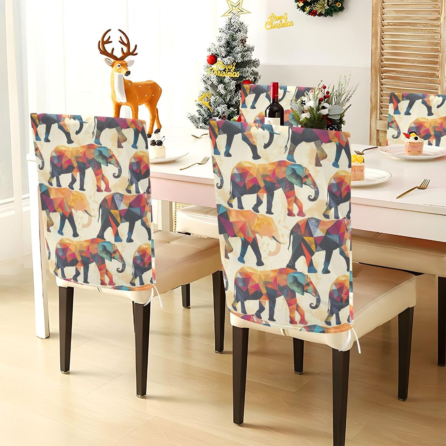 Chair Cover Material made of polyester,comfortable and soft to touch,reusable and suitable for long term use Features easy to install and remove, tie rope design at the bottom,machine washable Stylish Chair Decoration With beautiful pattern,it can be used for family party/ birthday party/wedding/ holiday party to add atmosphere, also can be used for chair decoration in living room, dorm, kitchen dining room,bedroom to bring protection to the chair while avoiding stains to dirty the chair back. Easy To Care Machine washable, Not washing with hot water, Not bleaching