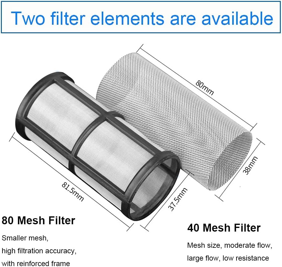 1/2" 3/4" 1" Plastic Filter, Nylon transparent Pre-filter Water Pipe Filtration, 40mesh 80mesh Filter For Agriculture Irrigation/sweeping/car Washing/breedingModel: Plastic filterMaterial: PC transparent cover/stainless steel mesh/nylon bodyCommon thread interface for home improvement: 1/2", 3/4", 1"Two filter elements are available: 80 mesh, 40 mesh40 mesh filter: moderate mesh size, large flow, low resistance;80 mesh filter: smaller mesh, high filtration accuracy, with reinforced frame.Installation method: no punchingRange of use: suitable for a variety of scenarios* Use nylon material as the main material* 304 stainless steel filter screen, effectively filter impurities* PC thick plastic , convenient and durable* Silicone gasket Pre-filterTwist easily by hand, wash as dirtyNotes:1. The color of the item may be slightly different from the picture due to the difference in light and screen.2. Due to manual measurement, please allow a difference of 0.5cm.