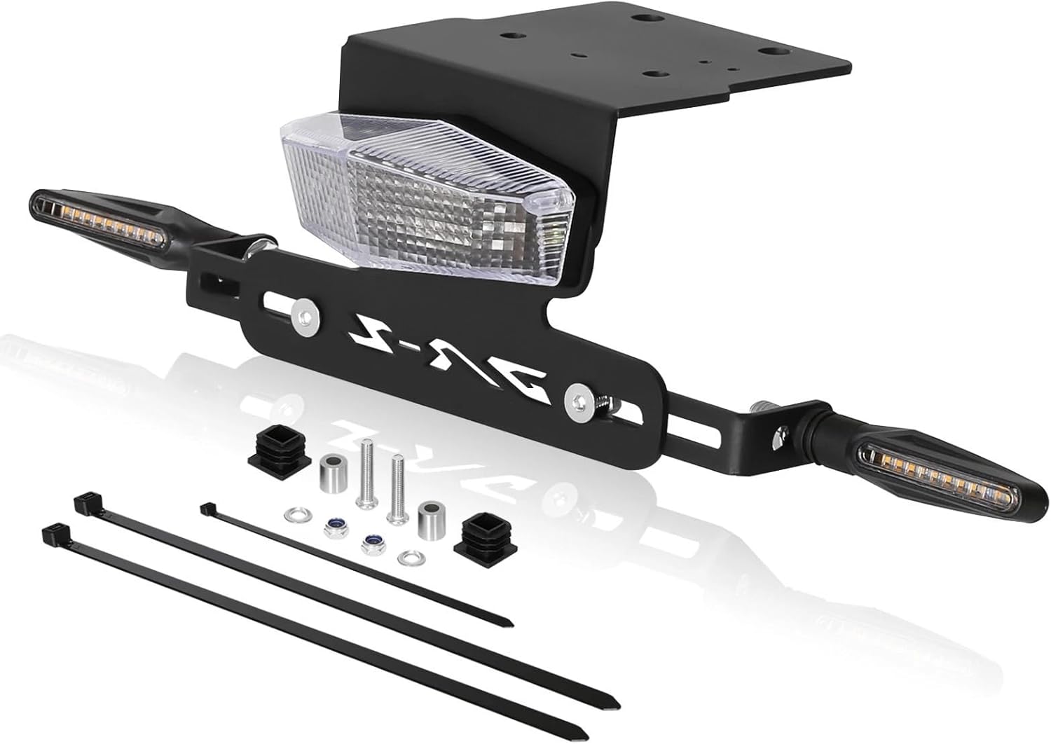 Play&Plug DRZ4S DRZ4SM Fender Eliminator Kit - Tail Tidy Compatible with 2024-2025 DR-Z4S DR-Z4SM - License Plate Bracket with Tail Light and LED License Light (Clear) 【Play&Plug】1.Tail Light Cable connection method: black for negative electrode , red for running lights , green for brake lights. 2.Cable connection method:black for negative electrode , blue for running lights , yellow for brake lights. 3.Play&Plug Cable connection method:black for negative electrode , blue for running lights , yellow for brake lights. 【High-Quality License Plate Mount】This rear tail tidy features a compact design, made of 3mm high-quality aluminum plate with laser cutting and anodized surface. CNC bent for precision. Durable, lightweight, and replaces the bulky OEM fender. Includes indicator mounting positions. 【Reliable Service】If you have any questions, please message us on Amazon, and we will provide you with service as soon as possible.