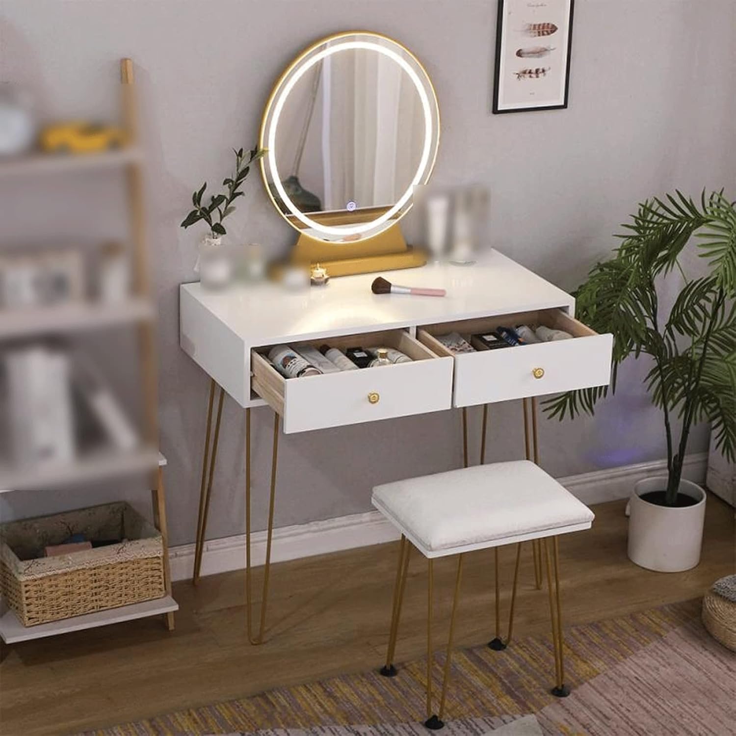 Easy to install and remove There are foot pads at the bottom to prevent the floor or products from rubbing and scratching; One machine for multiple purposes - due to the large size of the table top, the dresser can be used as a simple desk